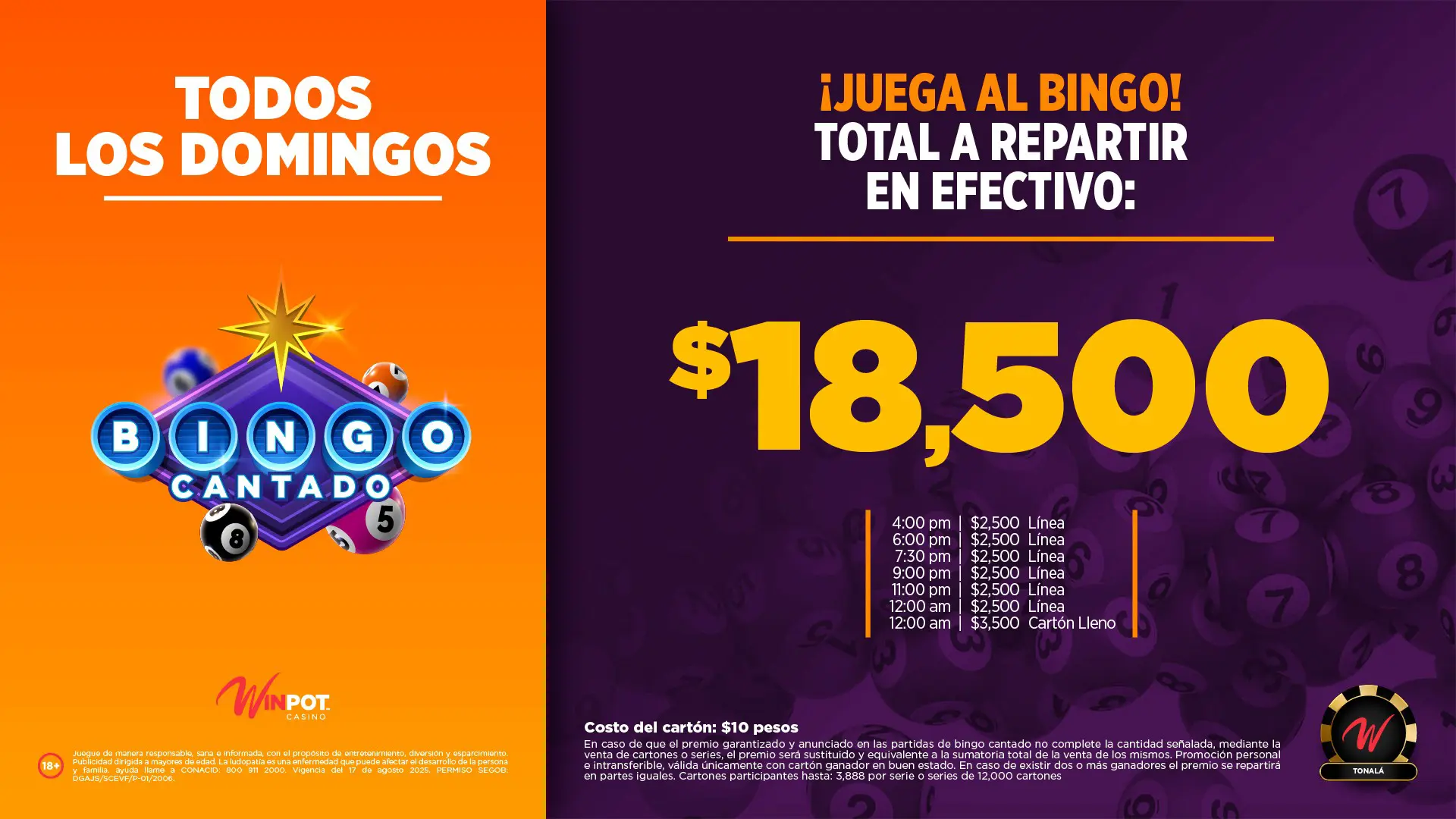 JUEGUE DE MANERA RESPONSABLE, SANA E INFORMADA, ÇON EL PROPÓSITO DE ENTRETENIMIENTO, DIVERSIÓN Y ESPARCIMIENTO. PUBLICIDAD DIRIGIDA A MAYORES DE EDAD. LA LUDOPATIA ES UNA ENFERMEDAD QUE PUEDE AFECTAR EL DESARROLLO DE LA PERSONA Y FAMILIA. AYUDA LLAME A CONACID: 800 911 2000. http://www.juegosysorteos.gob.mx/es/Juegos_y_Sorteos/Atencion_al_Ludopata